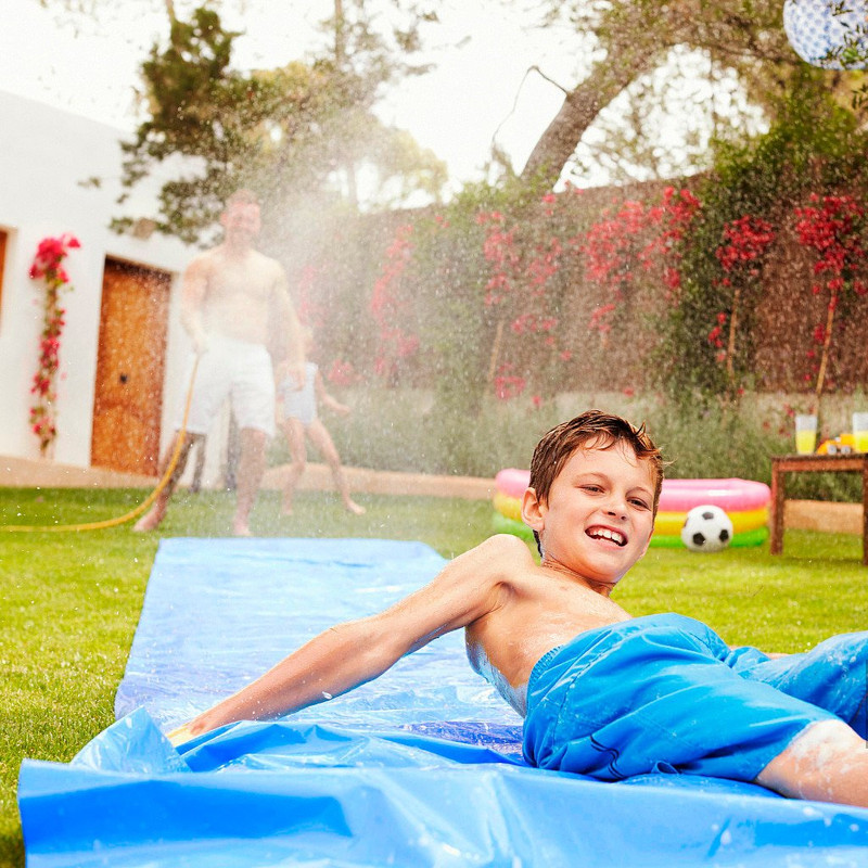 O ideal é que o terreno seja levemente inclinado. Isso ajuda no deslizamento e deixa a brincadeira mais empolgante. Caso o quintal seja plano, basta usar uma mangueira para criar fluxo contínuo de água.